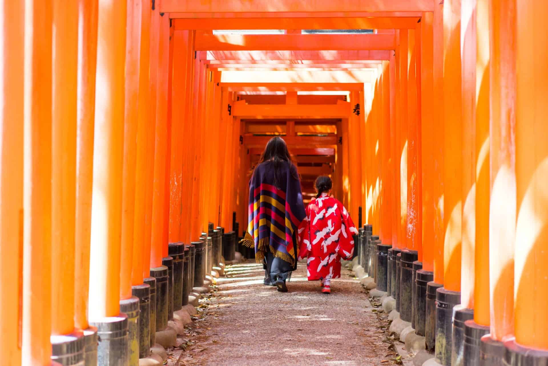 Les milliers de torii rouges du sanctuaire de Fushimi Inari Taisha forment un labyrinthe géant dans lequel les enfants adorent courir et explorer. Plus on monte sur la colline, plus la foule se raréfie et l'atmosphère devient spéciale. Prévoyez au moins 2 h sur place, voire plus si les enfants ont de l'énergie 😉