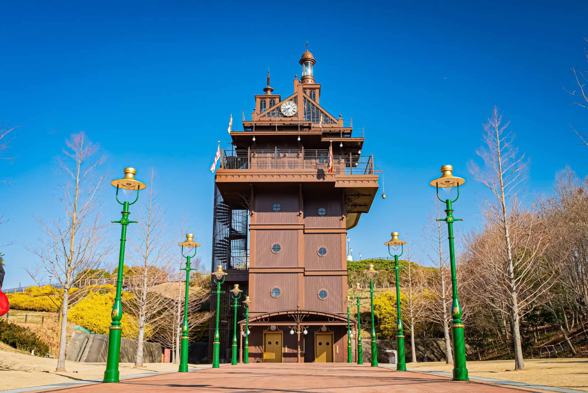 La colline de la jeunesse rend hommage au film d’animation Si tu Tends l’Oreille. Retrouvez-y une atmosphère poétique et un brin rétrofuturiste, avec notamment une tour ascenseur très science-fantasy du XIXe siècle. En fait, l’Elevator Tower vous permet de rejoindre le niveau inférieur du parc depuis la gare Linimo.