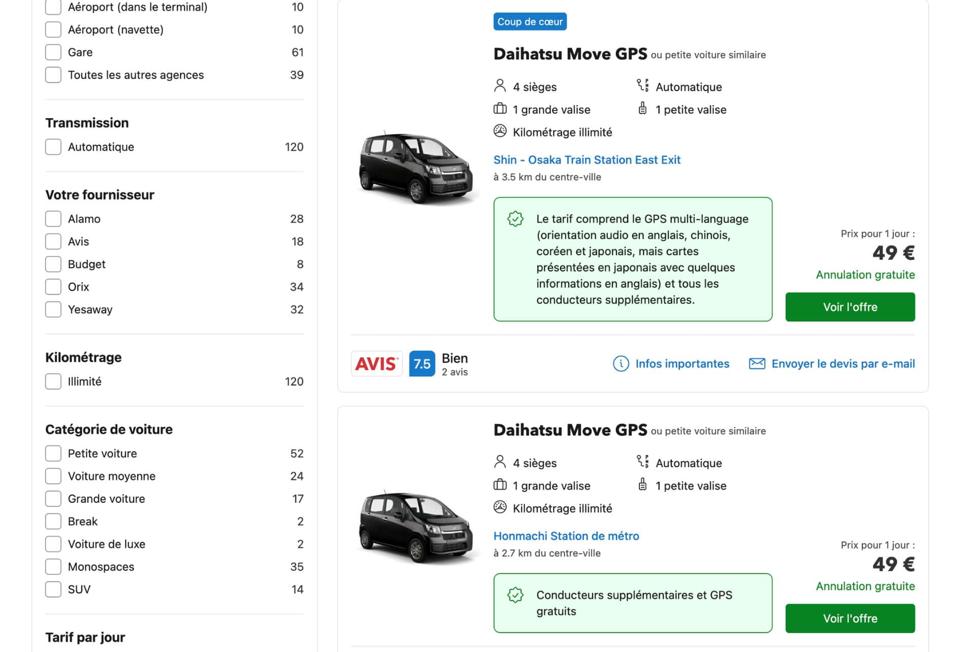 Si vous avez prévu un road trip au Japon, ou si vous envisagez de sortir des sentiers battus et de visiter des zones rurales comme les Alpes japonaises ou Kyushu, la location d’une voiture au Japon peut être une bonne option, surtout si vous prévoyez de rester deux semaines au Japon ou plus. En moyenne, comptez 55 € par jour pour une voiture de location au Japon.